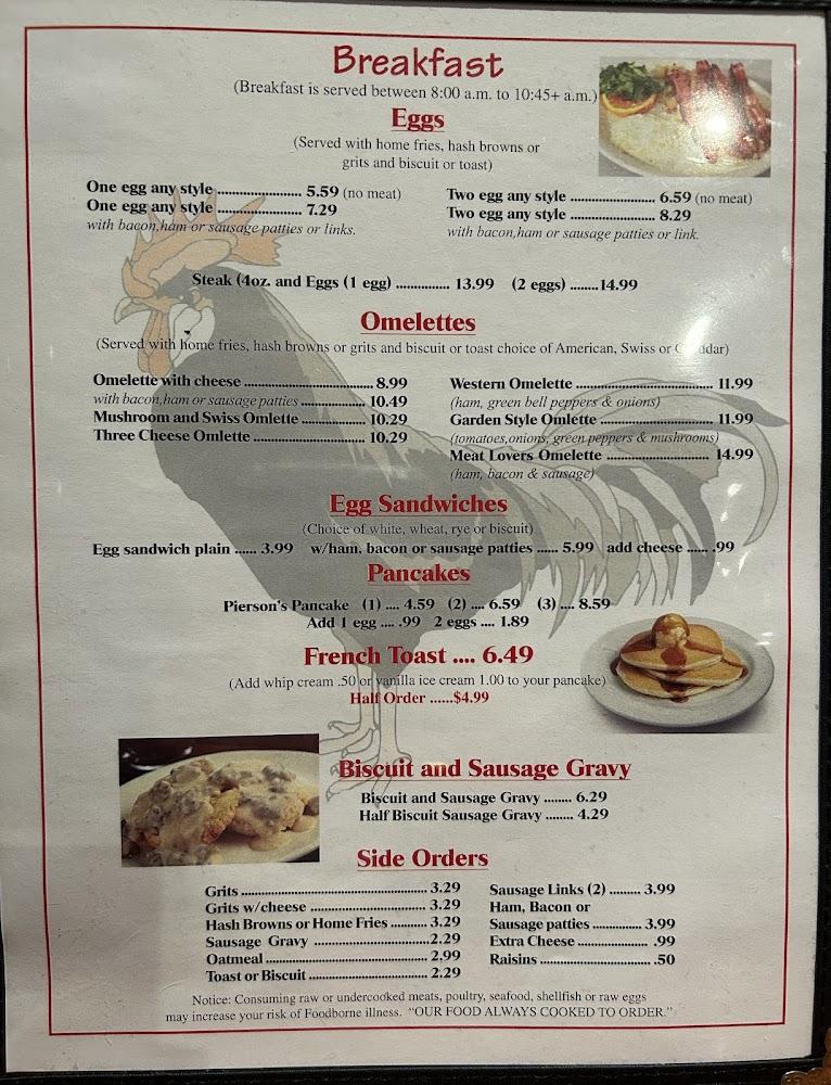 The menu at Pierson Family Restaurant features a delightful mix of comfort food staples. From burgers and sandwiches to fresh salads and daily specials, each dish is made to order. Popular choices include the juicy cheeseburger and savory Cuban sandwich.